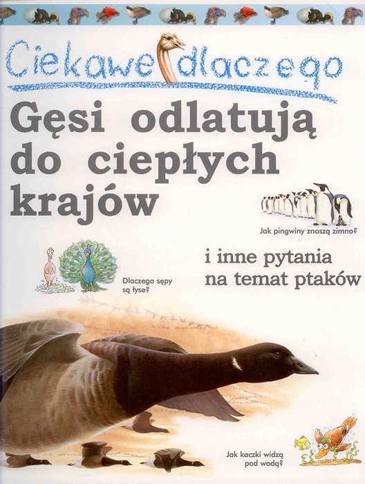 Oto książka, która w łatwy i ciekawy sposób wyjaśnia zagadki dotyczące świata ptaków. Dziecko dowie się z niej, dlaczego sępy są łyse, który ptak węszy przez całą noc i jak pingwiny znoszą arktyczny chłód. Zrozumie też, jak latają ptaki, w jakich miejscach składają jaja i jakie wydają dźwięki.