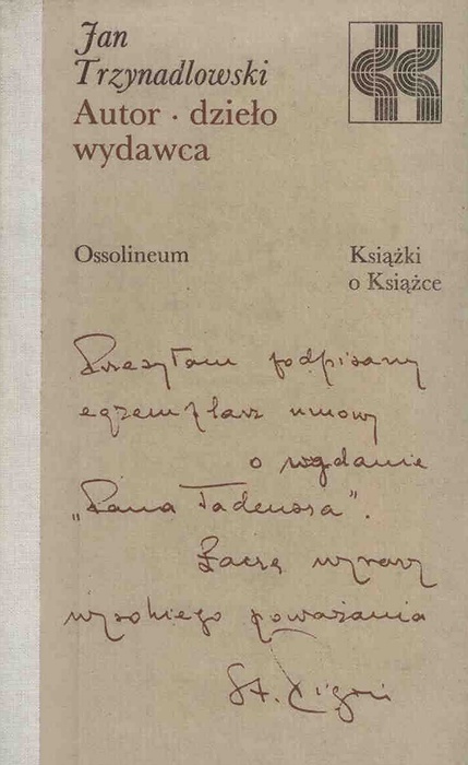 Autor - dzieło - wydawca / Jan Trzynadlowski. - Wrocław : Zakład Narodowy im. Ossolińskich, 1979. - 201, [2] s. : il., portr. ; 21 cm.