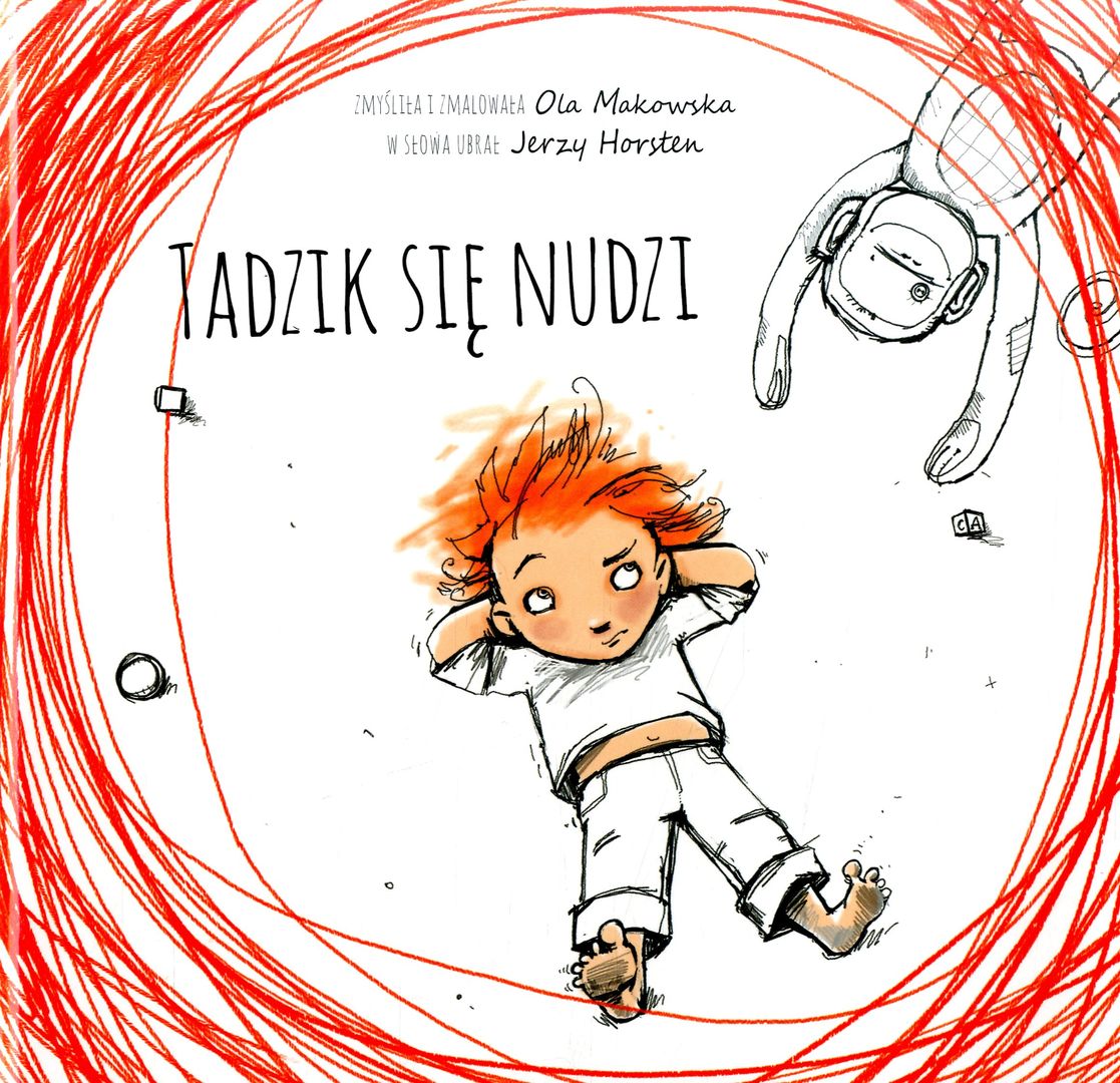Pewnego dnia… najnormalniej w świecie Tadzik zaczął się nudzić. Nudził się i nudził, a nuda trwała i trwała i wcale nie chciała odejść. Nagle coś zaszeleściło i poruszyło się za drzwiami. Tadzik zerwał się na równe nogi i pobiegł za dziwną, wijącą się jak wąż po podłodze, czerwoną zagadką. Nie był to jednak wąż ani latawiec, ani baranek czy zbłąkana chmurka… Co zaintrygowało Tadzika tak bardzo, że aż… przestał się nudzić? Ta rewelacyjnie opowiedziana i zilustrowana historyjka z pewnością zachwyci każdego malucha i pobudzi jego wyobraźnię.