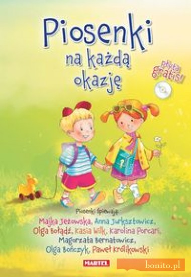 Śpiewnik "Piosenki na każdą okazję" adresowany jest do uczniów i nauczycieli szkół podstawowych i zawiera zróżnicowane tematycznie, popularne utwory. Zostały one uporządkowane według kolejności szkolnych świąt i uroczystości, takich jak początek roku szkolnego, Dzień Nauczyciela, święto odzyskania niepodległości, Boże Narodzenie, Dzień Babci i Dziadka, Wielkanoc, początek wakacji i inne. W książce zamieszczone są także rozkładówki edukacyjne, które okażą się pomocne w organizowaniu lekcji dla uczniów w wieku 7- 10 lat. Do publikacji dołączona jest również płyta CD z wyborem piosenek ze śpiewnika w znakomitych wykonaniach Majki Jeżowskiej, Anny Jurksztowicz, Olgi Bołądź, Kasi Wilk, Karoliny Porcari, Małgorzaty Bernatowicz, Olgi Bończyk i Pawła Królikowskiego.