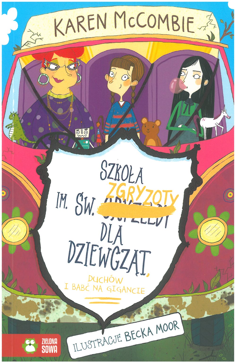 Ciężko jest traktować swoją dyrektorkę na poważnie, kiedy ma na sobie kostium jednorożca, prawda? Uwielbiam być w Szkole im. Św. Zgryzoty (czyli po portu Świętej Zgryzi). To nie jest zwykła szkoła. To zwariowane miejsce pełne oryginalnych osobowości. Mamy tutaj lekcje z umiejętności cyrkowych, piżamowe apele, lekcje budowania domków na drzewach i zwariowaną kozę o imieniu Miga. A co najlepsze, właśnie dowiedziałam się, że szkoła weźmie udział w konkursie filmów krótkometrażowych, a Lulu (nasza Dyrektorka) mianowała mnie REŻYSERKĄ!