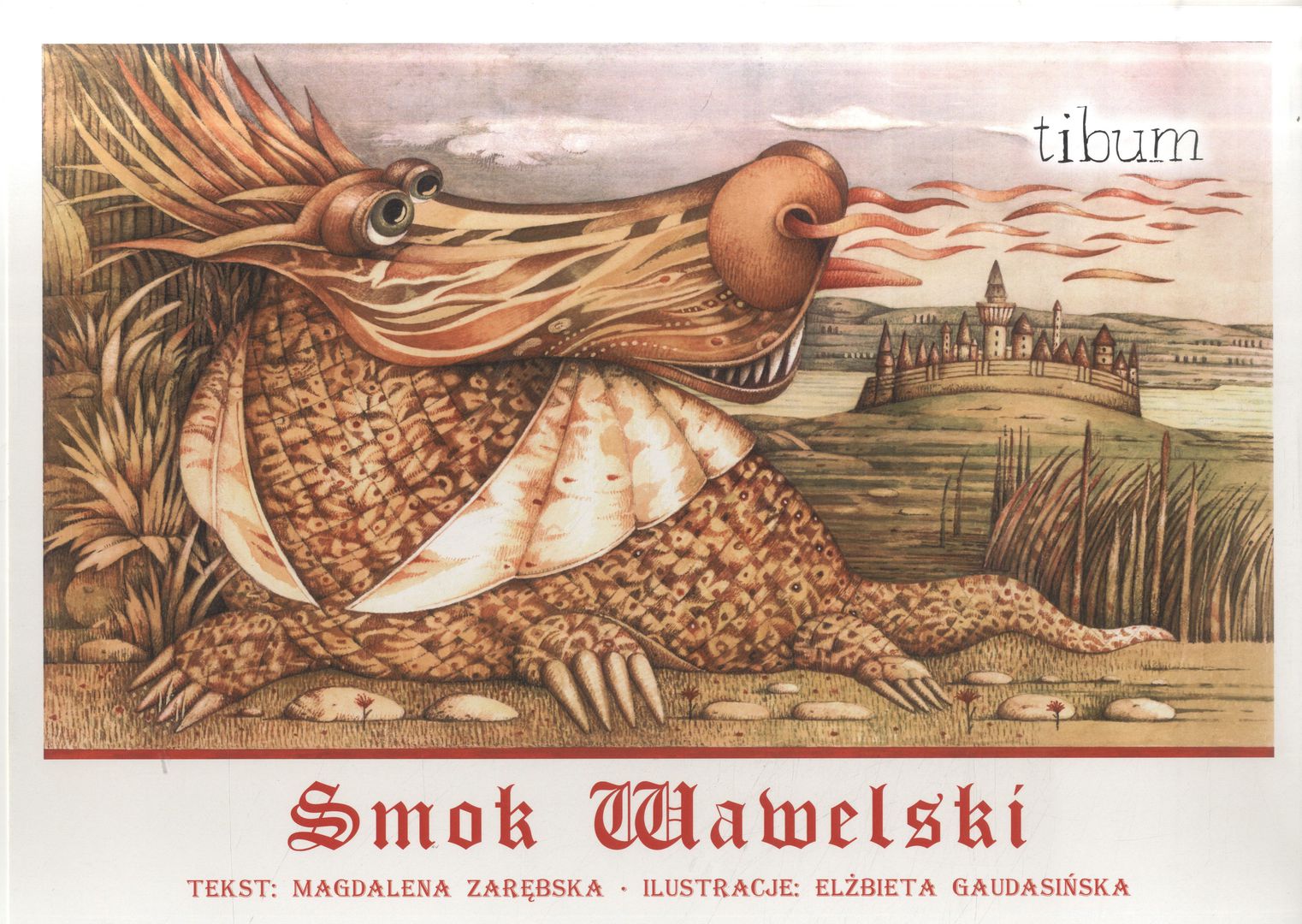 Smok Wawelski / tekst Magdalena Zarębska, ilustracje Elżbieta Gaudasińska. - Katowice : Wydawnictwo Tibum, copyright 2019. - Teka (17 kart tablic luzem) : ilustracje kolorowe ; 29x39 cm.