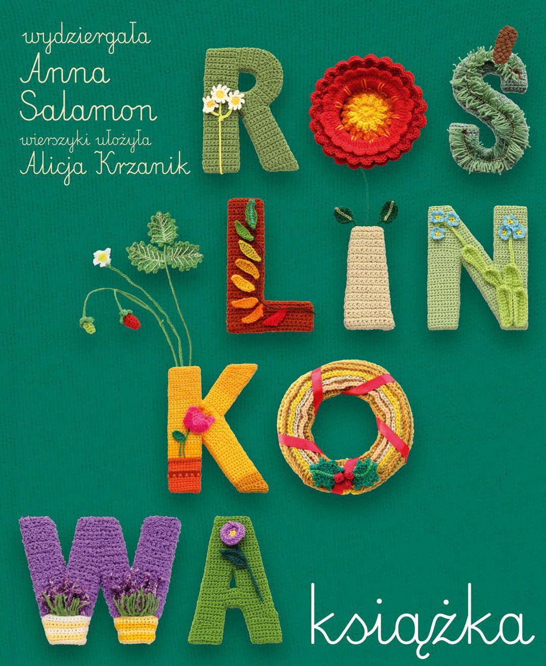 Roślinkowa książka / wydziergała Anna Salamon ; wierszyki ułożyła Alicja Krzanik. - Wydanie pierwsze. - Warszawa : Wydawnictwo "Nasza Księgarnia", copyright 2022. - [42] strony : ilustracje kolrowe ; 25 cm.