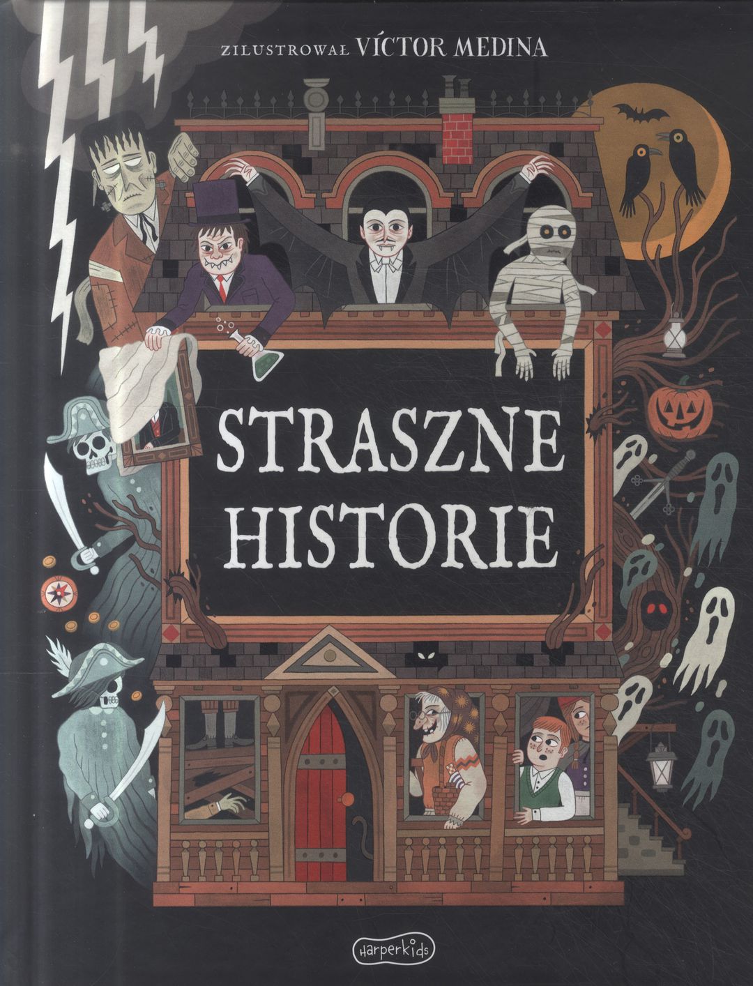Straszne historie oswajają młodych czytelników z grozą w bezpieczny sposób. To współczesne, ilustrowane adaptacje znanych i lubianych klasycznych opowieści m.in. o hrabim Draculi, potworze Frankensteinie, dziwnym przypadku doktora Jekylla i pana Hyde’a, przeklętej mumii, jeźdźcu bez głowy, piratach widmo czy okrutnym Dorianie Grayu. Te historie trzeba znać, stanowią część naszej kultury. W zbiorze Straszne historie te XIX-wieczne opowieści dostosowano do możliwości i potrzeb dzisiejszych młodych czytelników i czytelniczek. Autorzy uszanowali przebieg klasycznych fabuł i uchwycili ich najważniejsze elementy, rezygnując ze szczegółowych opisów makabry. Dzięki temu książka przestrasza ale nie przeraża. [lubimyczytac.pl]
