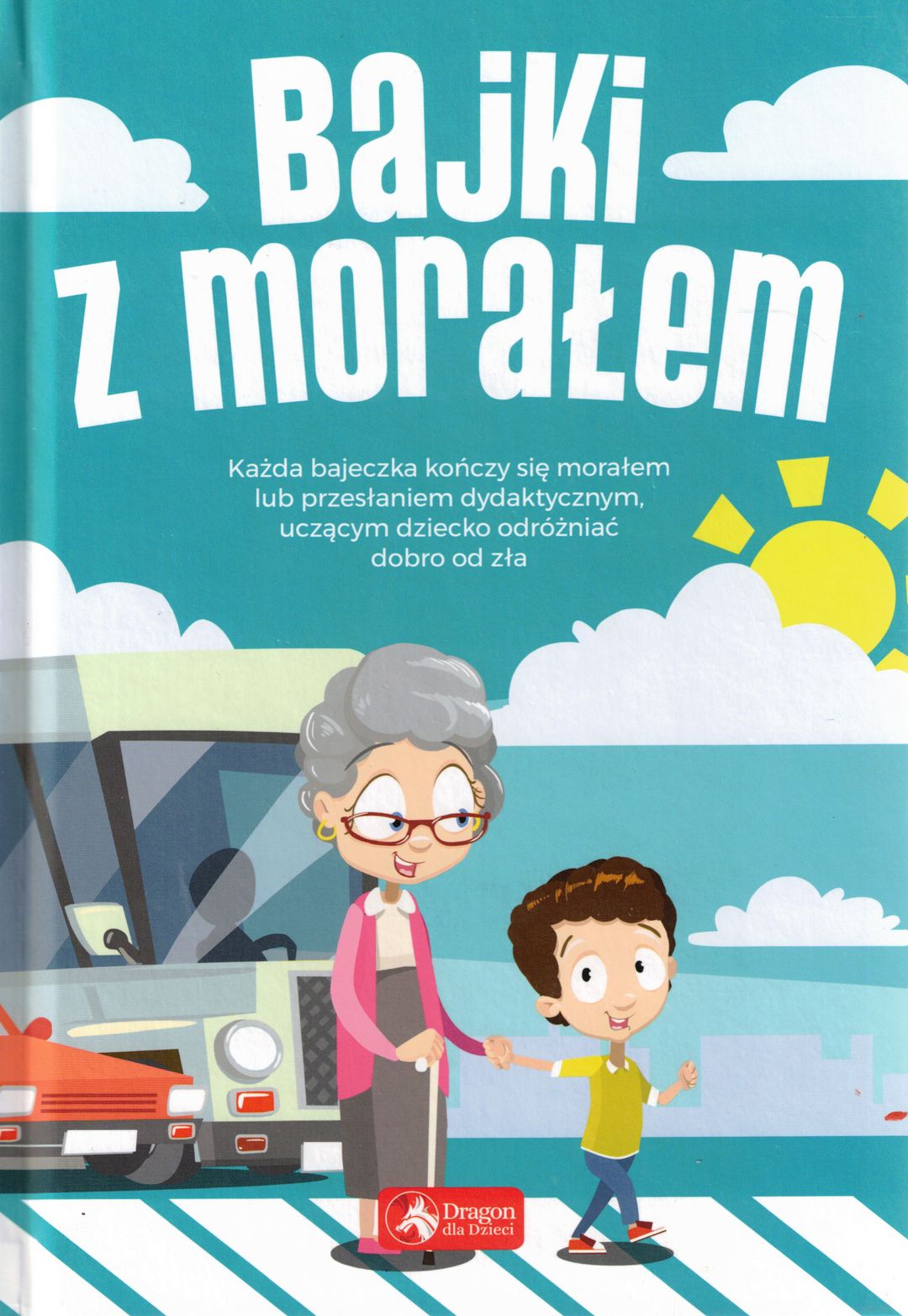Na okładce: Każda bajeczka kończy się morałem lub przesłaniem dydaktycznym, uczącym dziecko odróżniać dobro od zła.